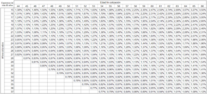 Y segundo, dada una base reguladora, el aporte marginal de cada año cotizado no es igual. Por cada año dentro de los 15 primeros conseguimos un 3,33 % de la base reguladora, mientras que por los siguientes años solo conseguimos un 2,28 %.