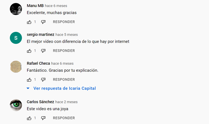 Para que compruebes por ti mismo las extraordinarias capacidades de Carlos Santiso como docente y decidas si te gustaría aprender con él, te invitamos a ver «Opciones: una herramienta indispensable para el value investing» la clase magistral que impartió el 5 de julio de 2021 dentro del Value School Summer Summit. Esto es lo que han opinado en YouTube otros inversores sobre aquella sesión:
