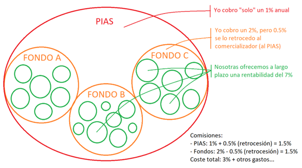 - El gestor del PIAS cobra una comisión del 1 % pero ¿cuál es la comisión de los fondos subyacentes en los que invierte el PIAS?