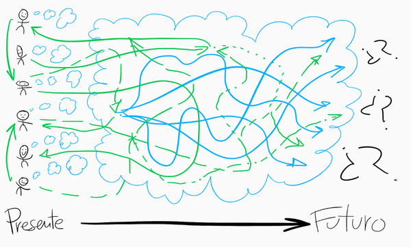Si esto es así para un conjunto limitado y cerrado de personas —simplificado hasta el punto de poder ser expresado matemáticamente en una hoja de papel—, el salto al sistema hipercomplejo de la actividad económica real, en sociedades abiertas formadas por millones de personas reales interactuando de manera libre y creativa a lo largo del tiempo (ver la charla que César Martínez Meseguer dio aquí), hace de la predictibilidad del futuro de los mercados una quimera sustancialmente imposible.