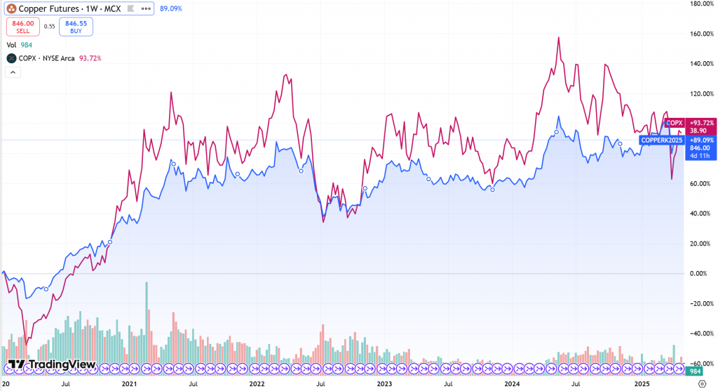 - COPX (Global X Copper Miners ETF): Centrado en mineras de cobre.