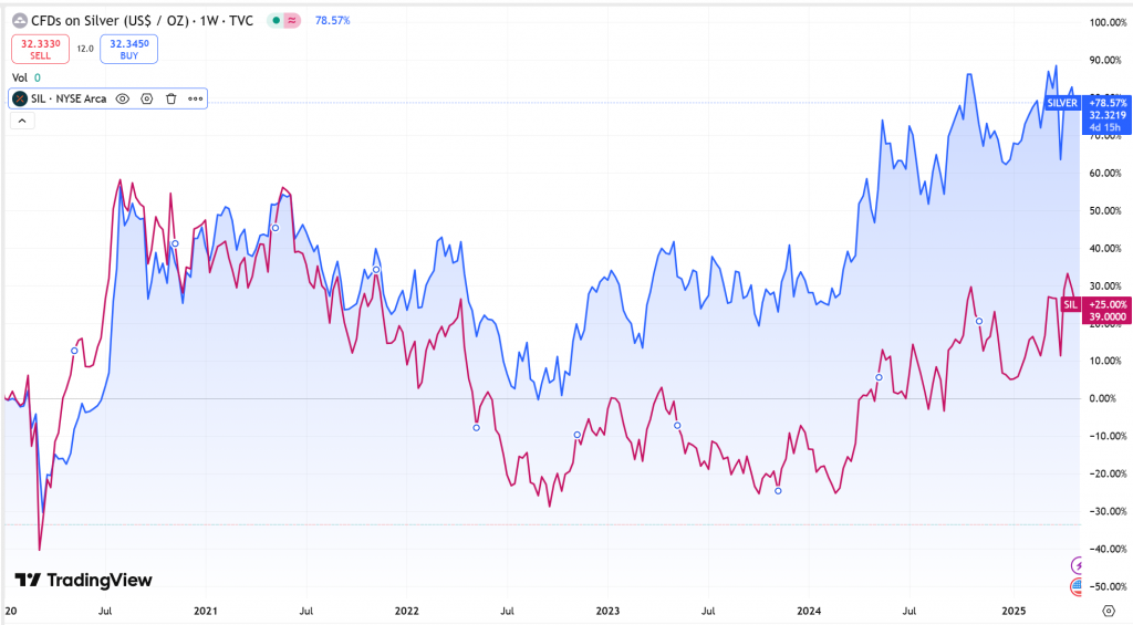 - SIL (Global X Silver Miners ETF): Especializado en compañías dedicadas principalmente a la extracción de plata.