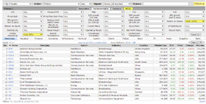 Si bien no son mi método favorito de generación de ideas, los screeners pueden ser una herramienta de utilidad para encontrar empresas que cumplan con diferentes criterios cuantitativos y cualitativos. Entre muchos otros, podemos cribar las empresas cotizadas por su capitalización bursátil, su rentabilidad, crecimiento, sector, país o sus ratios de valoración.