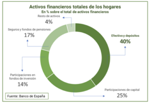 Tras ver la comparación de rentabilidad entre los dos tipos de inversión presentados: renta fija y renta variable. Sorprende comprobar que la mayoría de los ahorros de los españoles se centra en los depósitos cuya rentabilidad no supera el 0,1% y que tan solo el 14% se invierte en participaciones de fondos de inversión.