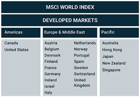 Nos guste o no, la indexación global al mercado bursátil de acciones significa invertir en los Estados Unidos de América. Esta realidad deriva de cómo se construyen los índices, que es en base a la capitalización ajustada al free float de la compañía, o sea, al porcentaje de acciones en circulación susceptible de ser adquirido por los inversores minoristas, lo cual excluye previamente la parte del capital social controlado por los accionistas estratégicos o dominantes de la empresa.