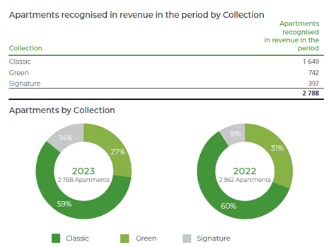 Como podemos observar, aunque el número de apartamentos vendidos tuvo una ligera reducción, el incremento del peso de la colección Signature y los otros negocios adyacentes de los que hemos hablado han contribuido a aumentar la cifra de negocio de la compañía. Pequeña, sí. No brilla mucho, no llama mucho la atención… pero sabe hacer muy bien las cosas.